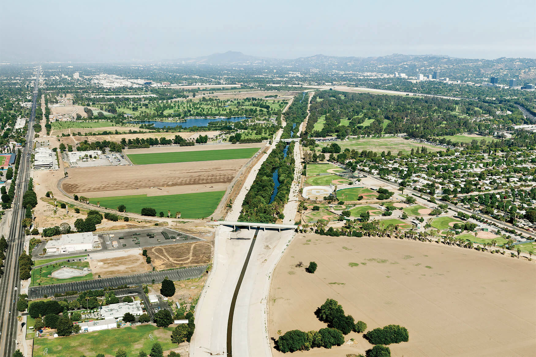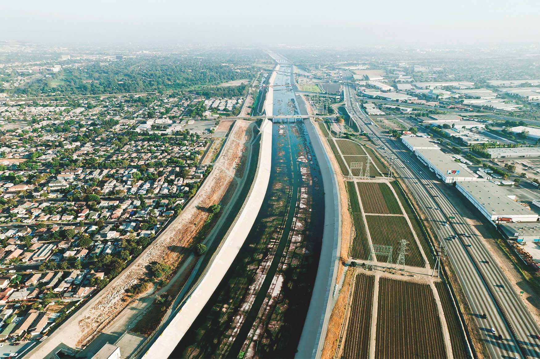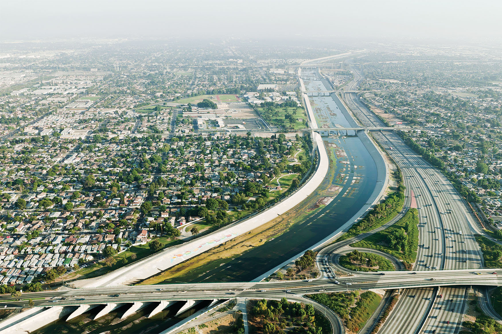 Sepulveda Basin Recreation Area Sherman OaksStudio CityCrossing the 134 FreewayEquestrian CenterThe Glendale NarrowsFrogtownTaylor YardPiggyback Yard and Mission JunctionFirst St and Fourth St BridgesSante Fe Railroad YardHobart Container Terminal YardThe River Full VolumeRio Hondo ConfluenceRosecrans Ave BridgeArtesia FreewayEdison Right of Way, Del Amo Blvd The Long Beach EstuaryThe Long Beach Estuary