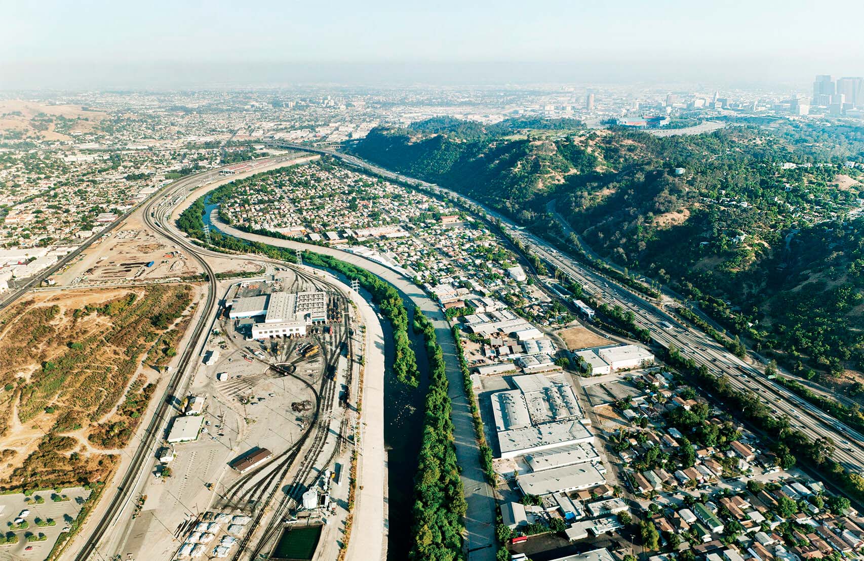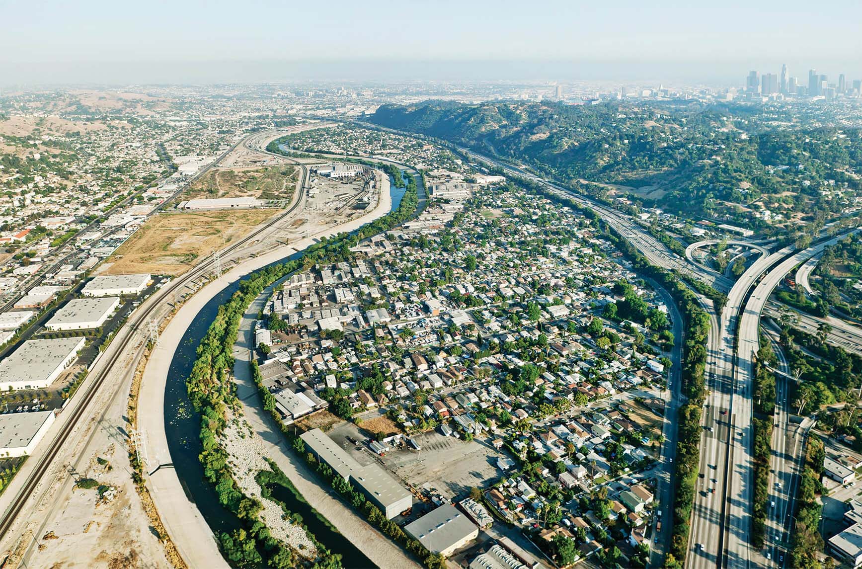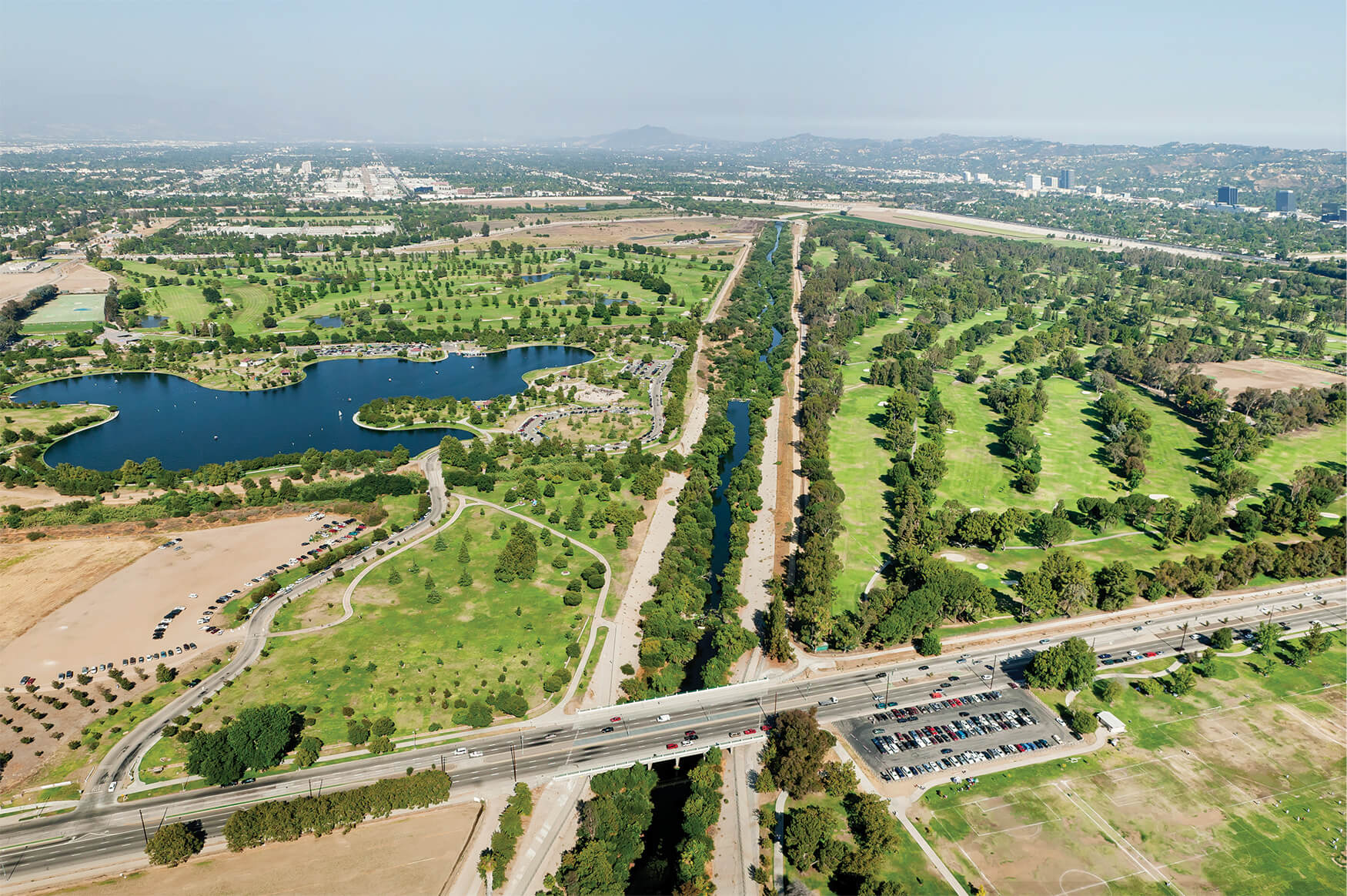 Sepulveda Basin Recreation Area Sherman OaksStudio CityCrossing the 134 FreewayEquestrian CenterThe Glendale NarrowsFrogtownTaylor YardPiggyback Yard and Mission JunctionFirst St and Fourth St BridgesSante Fe Railroad YardHobart Container Terminal YardThe River Full VolumeRio Hondo ConfluenceRosecrans Ave BridgeArtesia FreewayEdison Right of Way, Del Amo Blvd The Long Beach EstuaryThe Long Beach Estuary